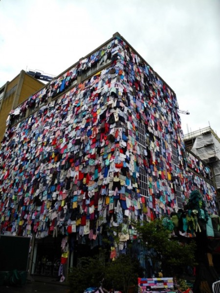 Para divulgar esta iniciativa, M&S, ha cubierto el exterior de su principal tienda, que tiene varios pisos, con 10.000 artículos donados, creando una llamativa y colorida imagen.