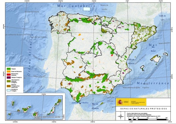 A nivel estatal la mayoría de la superficie protegida en España corresponde a la figura de Parque Natural, 162 declarados con cerca de 4 millones de hectáreas, seguida de la figura de Parque Nacional. Tenemos declarados 15 Parques Nacionales, que suman un total de 364.626 hectáreas protegidas (8% de la superficie protegida). de las cuales 15.988 corresponden a superficie marina.